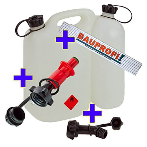 | Produktdetails | für 5,5 Liter Kraftstoff und 3 Liter Öl, transparent, inkl. Auslaufrohr, Revers-Einfüllsystem |