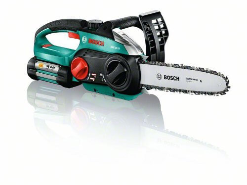 Das Modell AKE 30 LI von Bosch ist eine ideale Akku-Kettensäge für Gartenarbeiten, wobei es für den Laubschnitt besser geeignet ist als für den Holzschnitt. Trotz ihres relativ hohen Gewichts ist die Bosch Motorsäge handlich und kompakt. Besonders hervorzuheben ist die umfangreiche und komfortable Ausstattung mit Softgrip, Füllstandsanzeigen, automatischer Kettenschmierung sowie werkzeuglosem Spannen und Wechseln der Kette. Kettenbremse und Handschutz sorgen für ein sicheres Arbeiten.