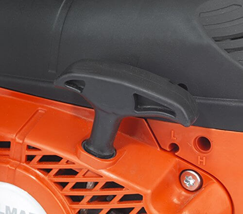 | Ausstattung | seitliche Kettenspannung, automatische Kettenschmierung, Handschutz, Kettenbremse, Krallenanschlag, Kraftstofffüllstandsanzeige, Vibrationsdämpfer, Easy-Start System, Fällmarkierung |