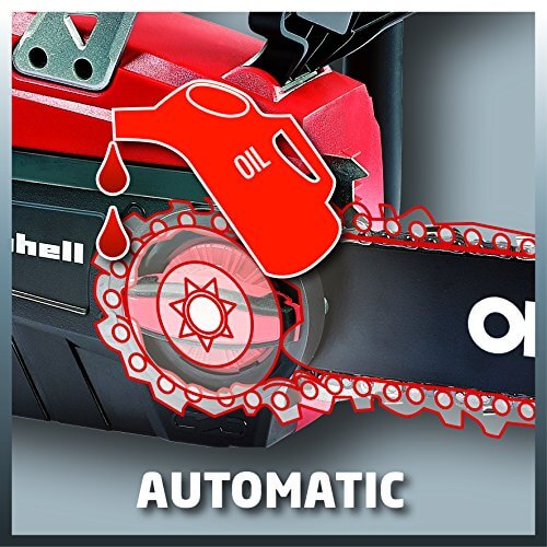 Die Einhell Akku-Kettensäge GC-LC 18 Li ermöglicht ein einfaches, präzises und leichtgängiges Schneiden von Holz, Büschen und Bäumen. Darüber hinaus ist sie robust und pflegeleicht. Die Akku-Kettensäge von Einhell hat eine automatische Kettenschmierung, die aus einem 200 Milliliter fassenden Öltank gespeist wird. Auch Wechsel und Spannung der Kette können werkzeuglos erfolgen. Die seitliche Kettenspannung geht einfach und unkompliziert von der Hand. Mit einem Schalleistungspegel von 97 Dezibel ist das Modell GC-LC 18 Li von Einhell im vollen Einsatz nicht zu laut. Außerdem ist die Einhell Akku-Kettensäge GC-LC 18 Li mit einem Gewicht von 2,97 Kilogramm relativ leicht, wobei allerdings noch Betriebsmittel, Sägekette, Schwert und Akku hinzuzurechnen sind.