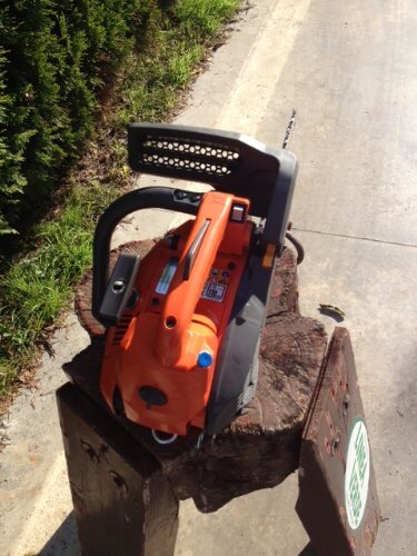 | Ausstattung | seitliche Kettenspannung, automatische Kettenschmierung, einstellbare Ölpumpe, Leichtstartfunktion, Krallenanschlag, Handschutz, Kettenbremse, Ölfüllstandsanzeige |